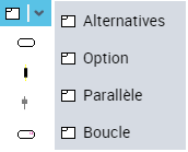 Vous pouvez associer au fragment combiné différents types d'opérateur d'interaction. La flèche située à droite du bouton offre un raccourci vers quatre d'entre eux. Voir