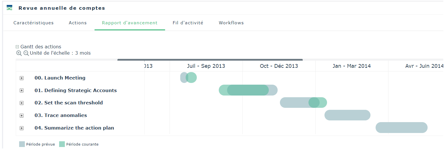 Ce diagramme de Gantt vous permet de visualiser l'enchaînement des actions prévues et réalisées.