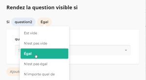 *En fonction du type de question, différents tests sont proposés (par exemple : égal, contient, inférieur, supérieur) :