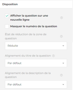 La section Disposition sur chaque question propose les possibilités suivantes en complément :