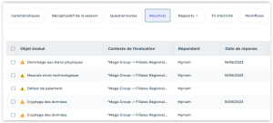 Pour accéder à la liste des questionnaires d'évaluation remplis par les répondants :