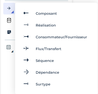 Afin de représenter différents types de relation, différentes formes de liens d'ébauche sont également proposées :