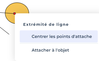 Lorsqu'une ligne est attachée à un objet ou dans le cas des liens dans les diagrammes, vous pouvez centrer les points d'attache.