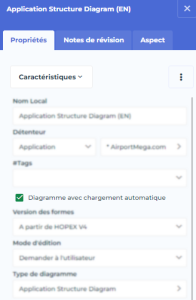 A la création d'un diagramme, les composants de l'objet décrit sont automatiquement insérés dans le diagramme. Par défaut, si de nouveaux composants sont ajoutés à l'objet décrit après la création du diagramme, ils ne sont pas automatiquement pris en compte dans le diagramme.