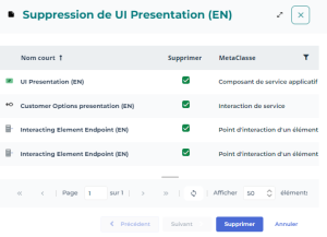 Elle présente l'objet que vous voulez supprimer ainsi que les objets qui en dépendent, le cas échéant.