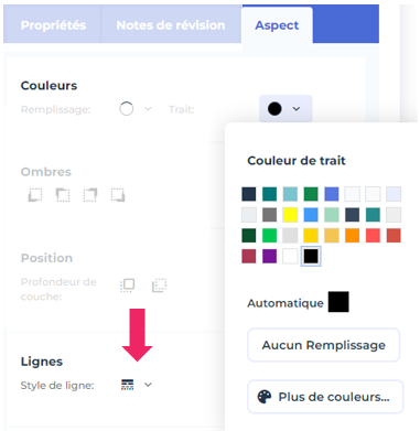 3. Dans la section Couleurs > Trait, cliquez sur la flèche.