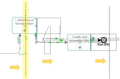 • Les éléments entièrement situés à droite de la ligne sont déplacés vers la droite.