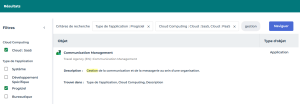 Filtre 2 Type de l'application : "Progiciel" (la valeur “Cloud : PaaS" disparaît du filtre Cloud Computing car aucune application de Type "Progiciel" n'est en "Cloud : PaaS")