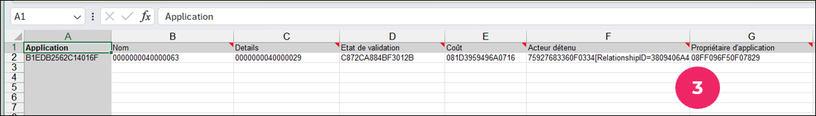 Une fois les colonnes créées et le modèle enregistré, les colonnes spécifiées apparaissent dans la feuille Excel associée.