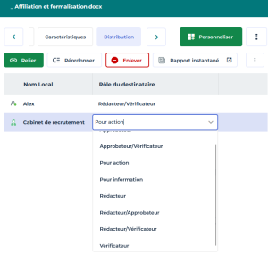 6. (En fonction de votre profil) Cliquez dans le champ Rôle du destinataire et à l'aide de la liste déroulante sélectionnez le rôle que joue chaque destinataire.