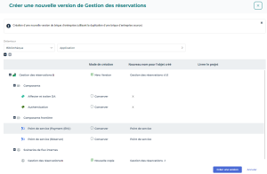 Une fenêtre s'ouvre pour vous assister dans la création de la nouvelle version en vous présentant la liste des composants de l'objet initial.