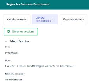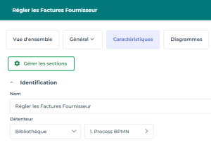 Exemple : Le Nom du processus est "Régler les factures fournisseur", son Détenteur est la Bibliothèque "1.Process BPMN".