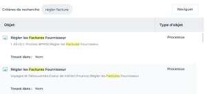 Exemple : Le nom long du processus "Régler les Factures Fournisseur" est "1.AS-IS::1. Process BPMN::Régler les Factures Fournisseur".