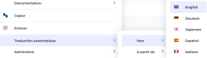 Traduction automatique > A partir de, vous devez préciser la langue source. La langue cible est la langue des données.