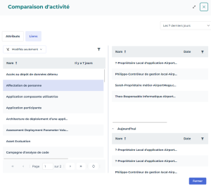 • comparer les modifications effectuées (avant/après) sur les attributs ou sur les liens