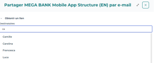 2. Dans le champ Destinataires, saisissez des lettres du nom de la personne (utilisateur Hopex) avec qui vous voulez partager cet objet.