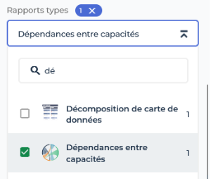 Ex. : dans le champ de recherche du filtre Rapports types, saisissez : "dé". La liste se réduit aux rapports types dont le nom contient "dé".