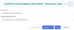 choisir le rapport type (MS Word) sur lequel va se baser le rapport.