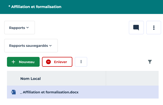 Le rapport MS Word est ajouté dans la liste des rapports MS Word de l'objet.