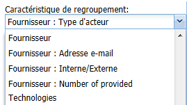 Exemple : l'objet Fournisseur apparaît dans la liste des caractéristiques de l'objet Technologie, avec les différents attributs sur lesquels peut porter le regroupement.