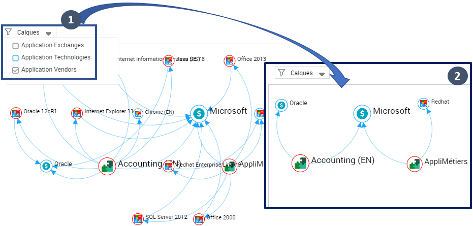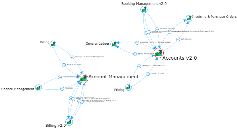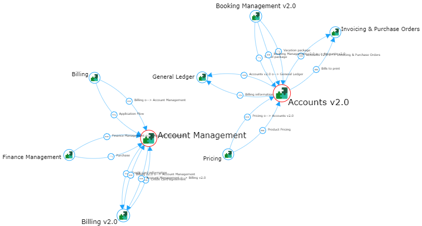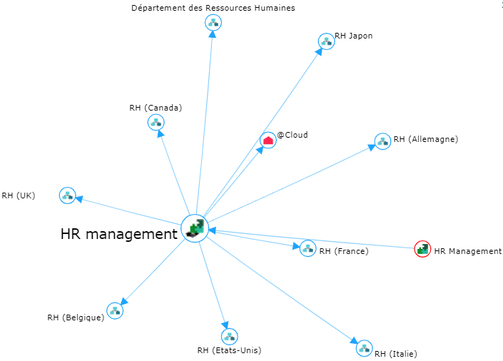 Ex. : l'arc entre "Payroll" et "Accounting" représente un groupement de relations.