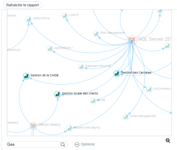 Vous pouvez afficher le graphe en pleine page. Avec cette affichage vous conservez le filtrage, la recherche d'objet et les options, mais l'édition du rapport n'est pas disponible.
