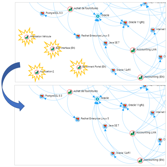 Exemple : le graphe du périmètre des environnements fonctionnels de l'application.