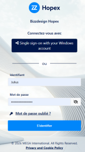 2. Cliquez sur votre bouton de connexion personnalisée, ou utilisez la connexion gérée au sein d'Hopex :
