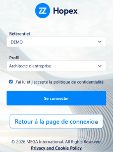 1. Lancez l'application Hopex à partir de son adresse HTTP.