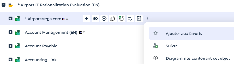 Dans une arborescence, d'autres actions sur un objet sont disponibles :