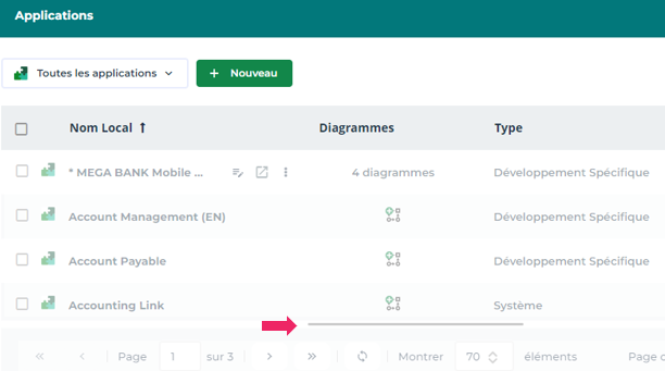 Par exemple, cliquez sur le menu de navigation "Applications".