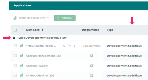 Dans la liste des applications, vous pouvez par exemple regrouper les application par type.