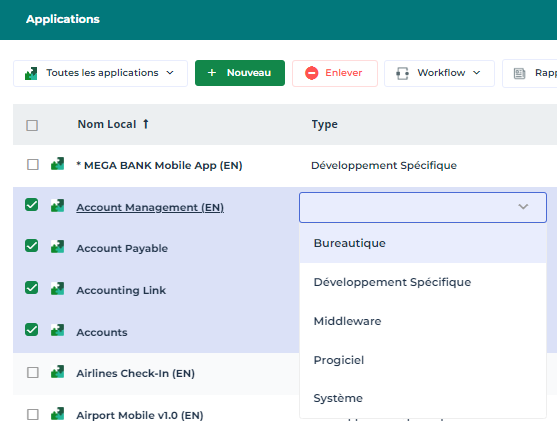 Hopex permet d'affecter une même valeur d'attribut à plusieurs objets dans une liste.