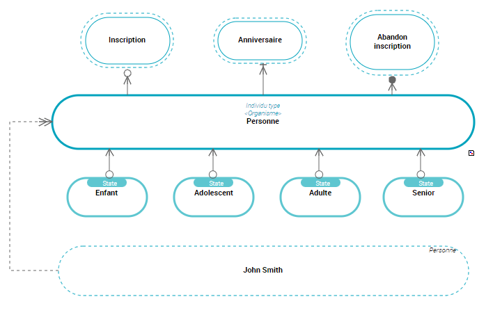 Par exemple, un même Abonné peut passer d'un état de "Enfant" à l'état "Adolescent" puis à l'état "Adulte" et enfin "Senior".