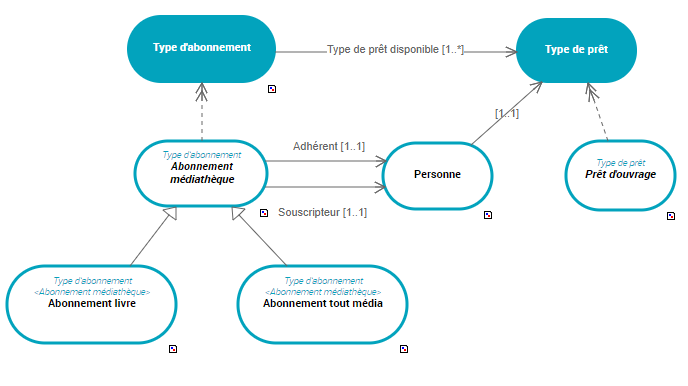 Par exemple, un "Type d'abonnement" est caractérisé par un "Type de prêt disponible".