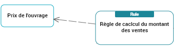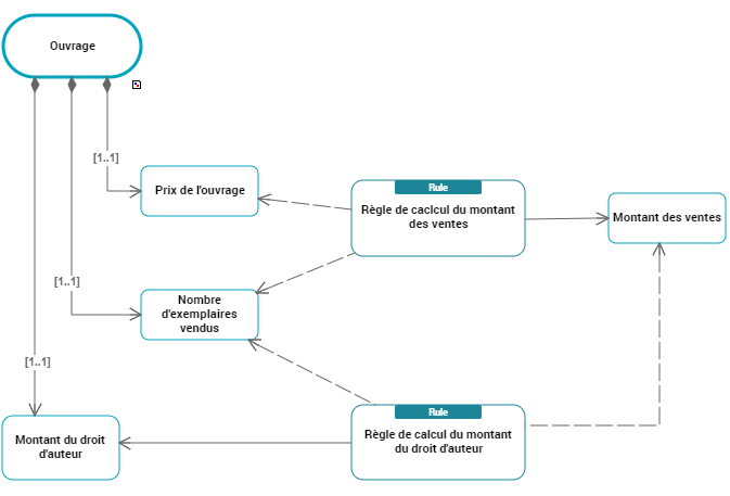 Dans notre exemple, tirez un lien de "Prix de l'ouvrage" vers "Règle de calcul du montant des ventes" et un lien de "Nombre d'exemplaires vendus" vers la règle de calcul.