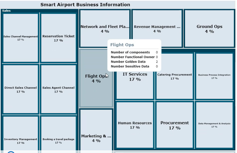 Il est possible de plonger sur un domaine de données et de visualiser les dépendances entre les sous-domaines lorsque celles-ci existent.