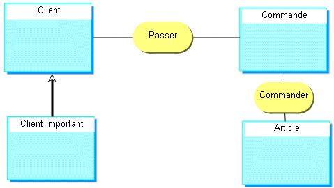 Dans l'exemple ci-dessus, les propriétés, les associations, les rôles et les contraintes spécifiés pour "Client" sont aussi valables pour "Client important".