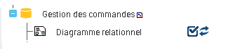 Lorsque vous lancez la synchronisation après modification du diagramme source, l'assistant active par défaut la mise à jour du diagramme cible. La mise à jour est signalée par l'affichage des deux petites flèches bleues.