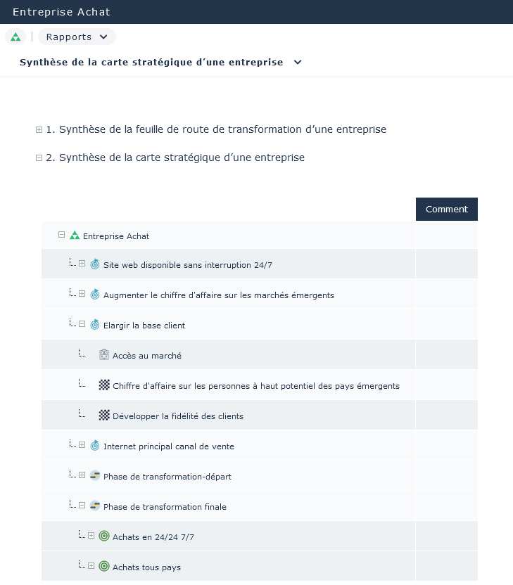 Les composants stratégiques d'une entreprise et des phases de transformation sont présentés dans un autre rapport de l'entreprise.