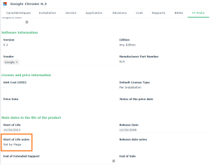 Les dates de cycle de vie de technologies issues de l'import IT-Pedia peuvent être en mode lecture uniquement. Par le biais d'un fichier Excel vous pouvez modifier ou compléter les dates de technologies et les mettre à jour dans votre référentiel.