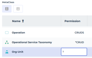 The permission of the Org-Unit MetaClass is CRUD, the command line of the Process Functional Administrator profile for the Org-Unit MetaClass is not restrictive: CRUDS.