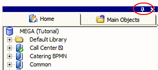 A pushpin in window title bars facilitates switching to "Auto Hide" mode. This function allows you to increase viewable display and editing space by auto hiding navigation and edit windows.