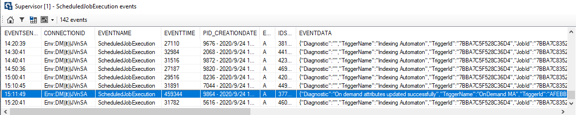 • In the Events tab, double-click ScheduledJobExecution event row.