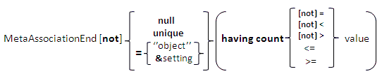 • Having count indicates the number of times the link must exist. For concatenated MetaAssociationEnds , the link reached by the first MetaAssociationEnd is the one counted.