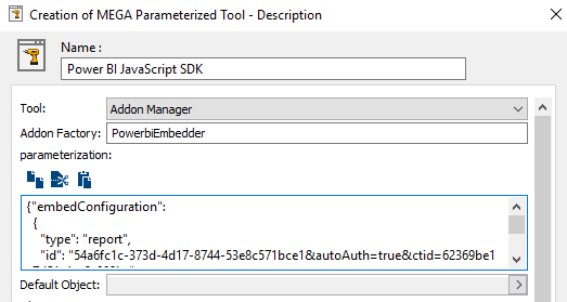 To configure the MEGA Parametrized Tool:
