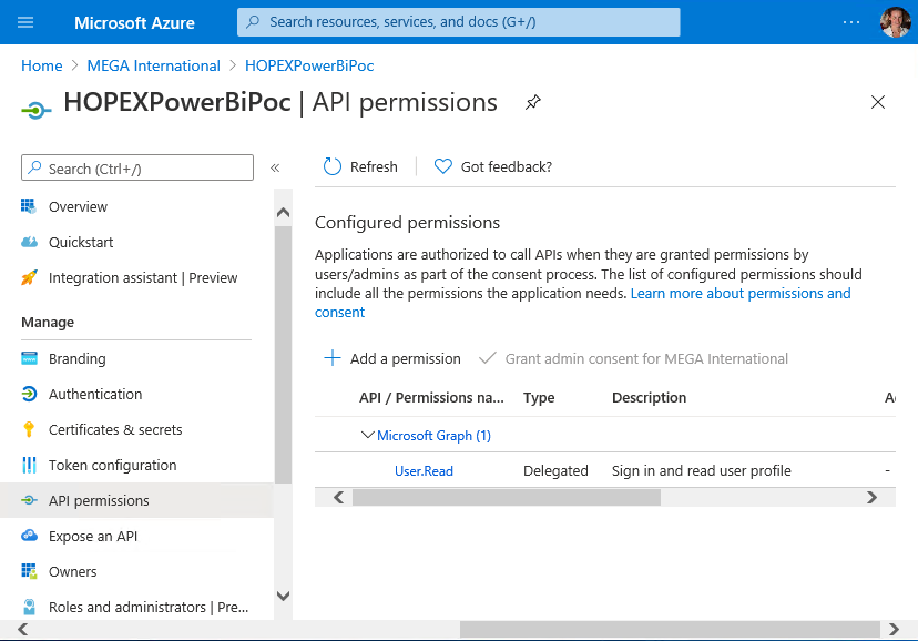 a) In the Name field, enter a name: HOPEXPowerBiPoc.