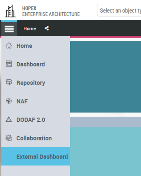 1) Connect to HOPEX (Web Front-End) with the profile corresponding to the Working Environment Template.