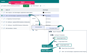 3. In the Queries without mandatory parameters list, right-click a query and select Documentation > New gauge report.