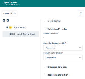 In the TreeSet Definition properties, the Definition page displays the structure of the TreeSet Definition.